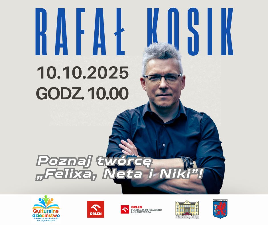 Już 10 października 2025 r. o godz. 10.00 w Miejskiej Bibliotece Publicznej w Świnoujściu odbędzie się spotkanie autorskie z Rafałem Kosikiem, autorem bestsellerowej serii „Felix, Net i Nika”.