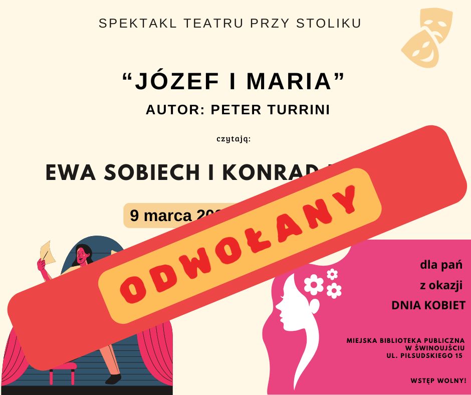 informujemy, że zaplanowany na poniedziałek, 9 marca, spektakl teatru przy stoliku nie odbędzie się. Powodem jest choroba jednego z aktorów. O nowym terminie wydarzenia poinformujemy wkrótce na stronie internetowej oraz w mediach społecznościowych biblioteki.