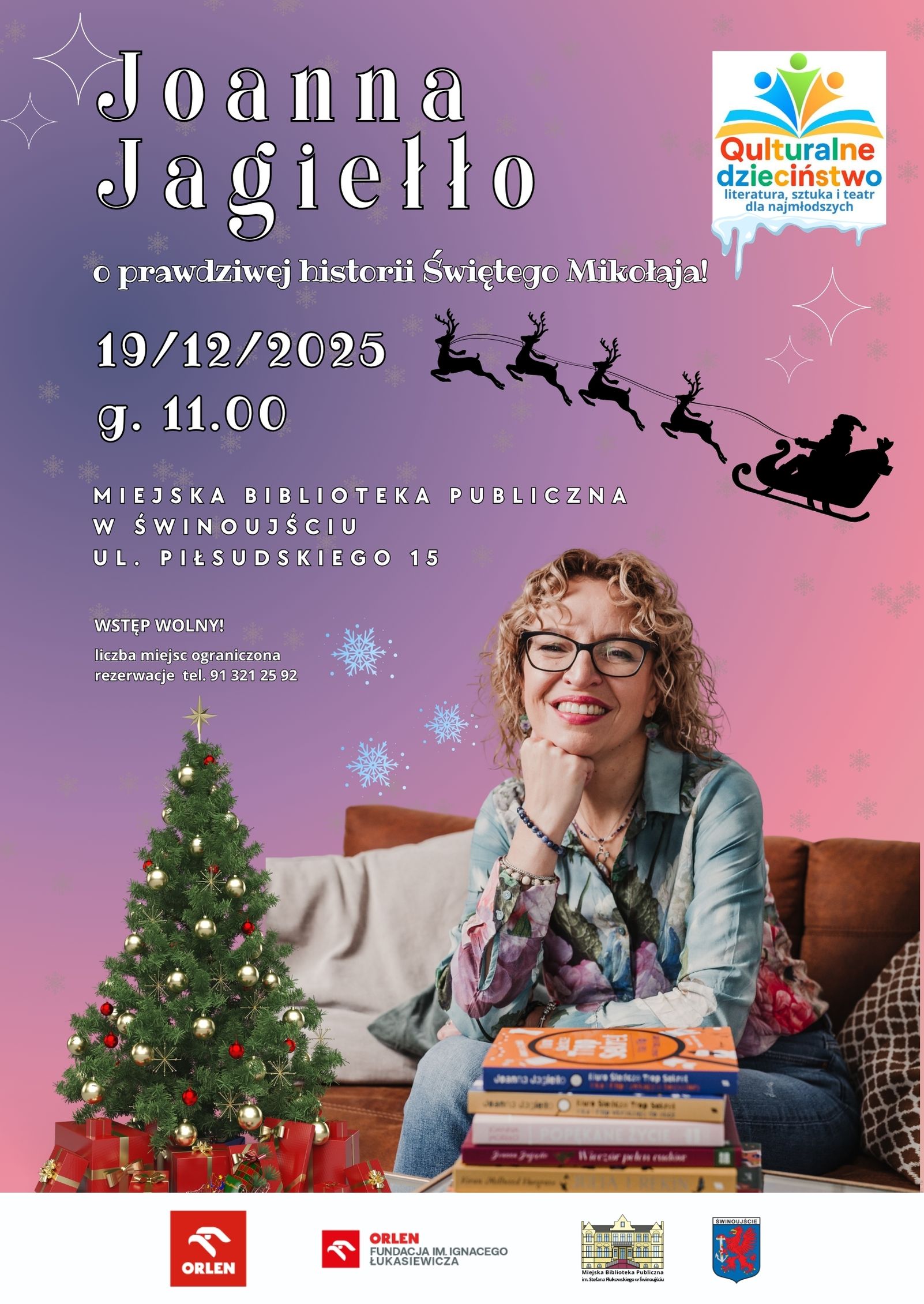 Miejska Biblioteka Publiczna w Świnoujściu zaprasza dzieci z przedszkoli na świąteczne spotkanie z pisarką Joanną Jagiełło, autorką książki „Święty Mikołaj. Historia prawdziwa”.