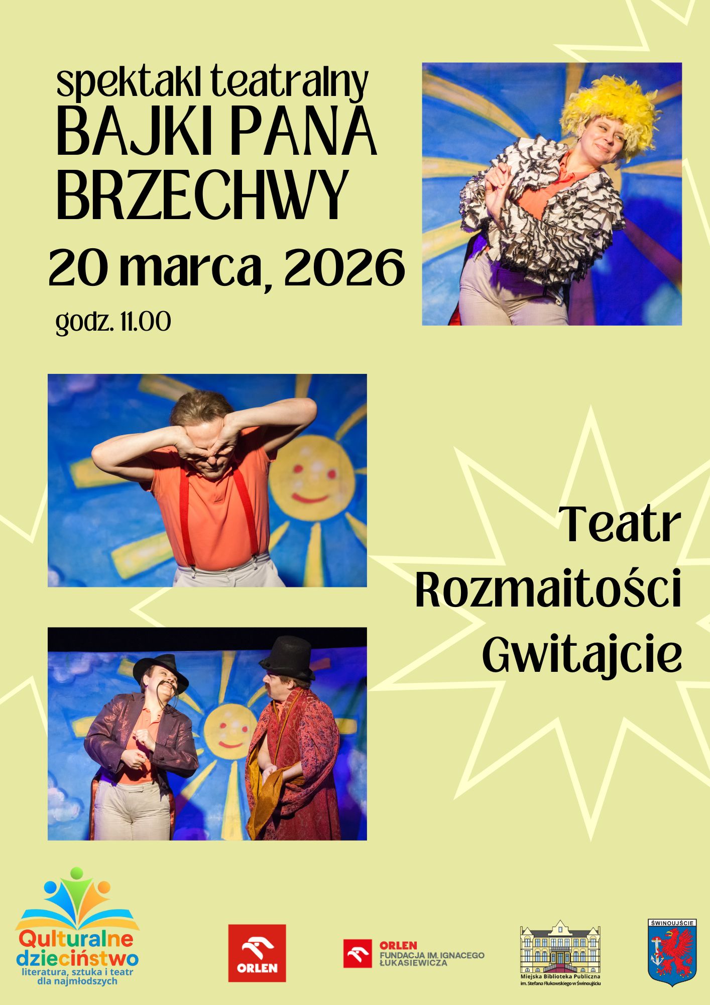 Miejska Biblioteka Publiczna w Świnoujściu zaprasza na spektakl teatralny „Bajki Pana Brzechwy” w wykonaniu Teatru Rozmaitości Gwitajcie. Przedstawienie odbędzie się 20 marca 2026 r. o godz. 11.00 w siedzibie biblioteki.
