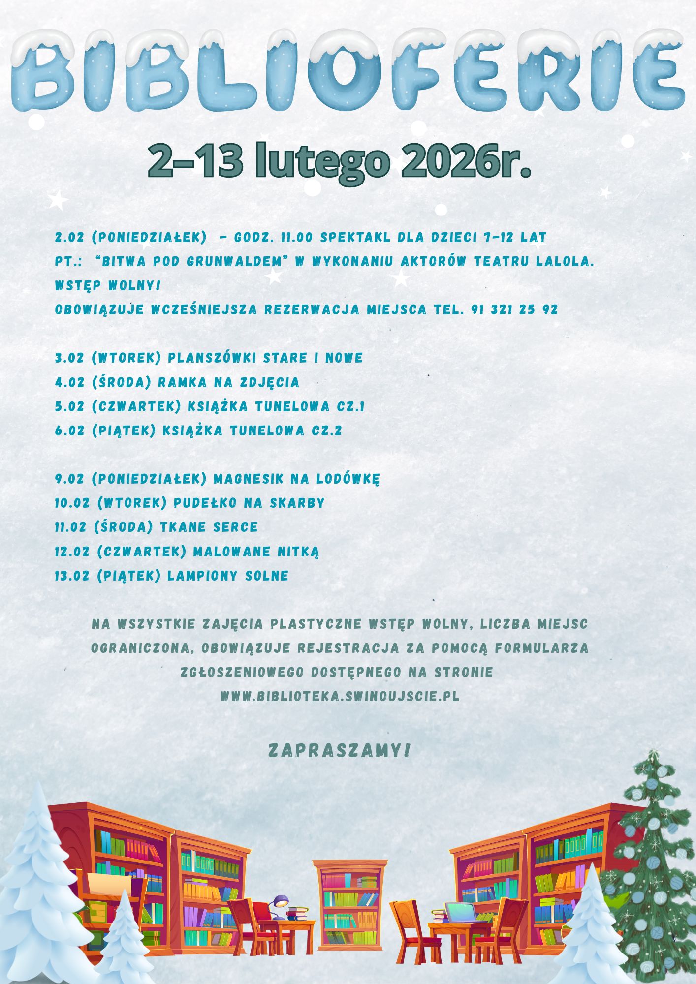 Biblioferie 2026 – zapraszamy dzieci na kreatywne ferie w bibliotece!