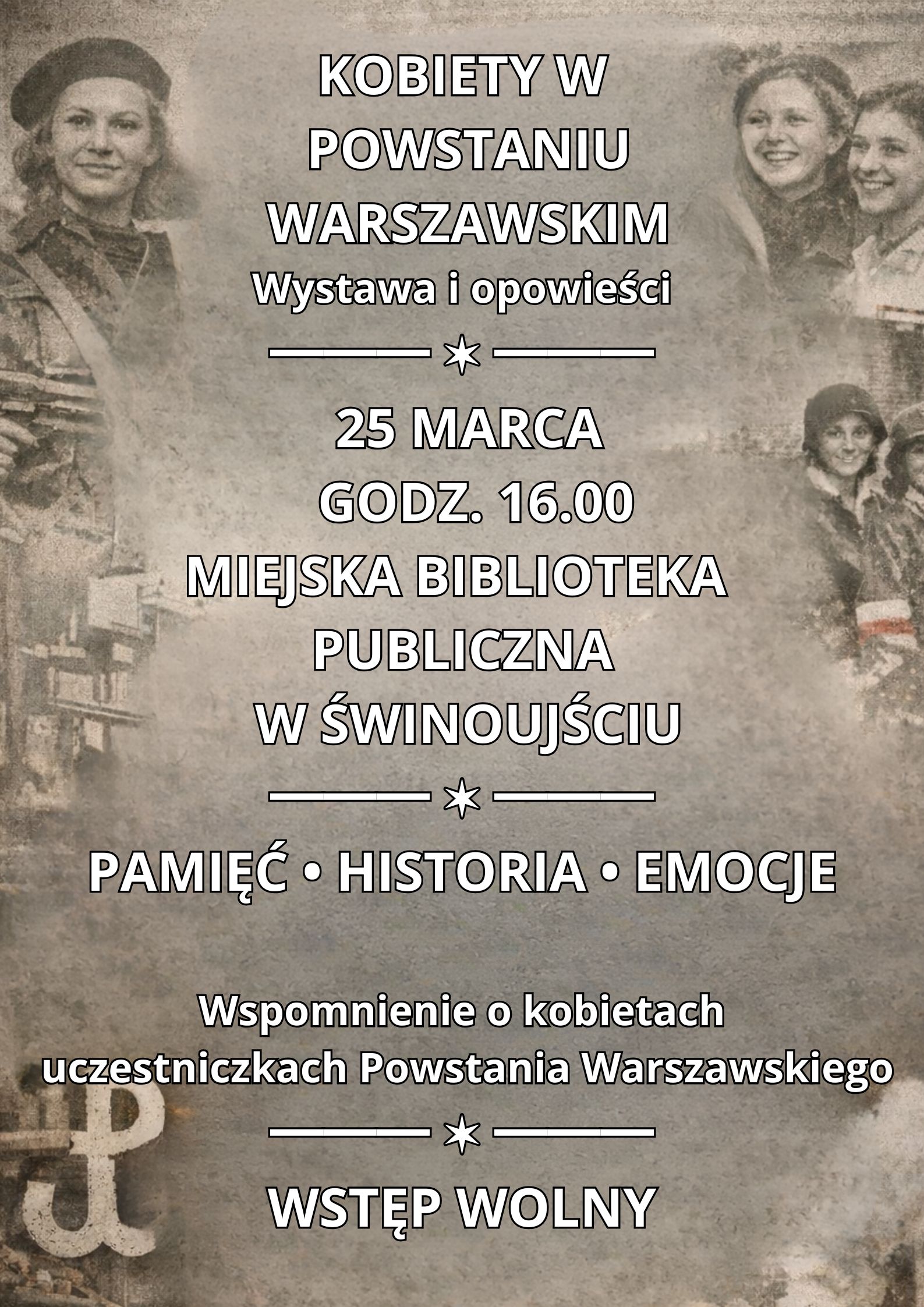 Miejska Biblioteka Publiczna w Świnoujściu zaprasza na wydarzenie poświęcone kobietom uczestniczącym w Powstaniu Warszawskim.