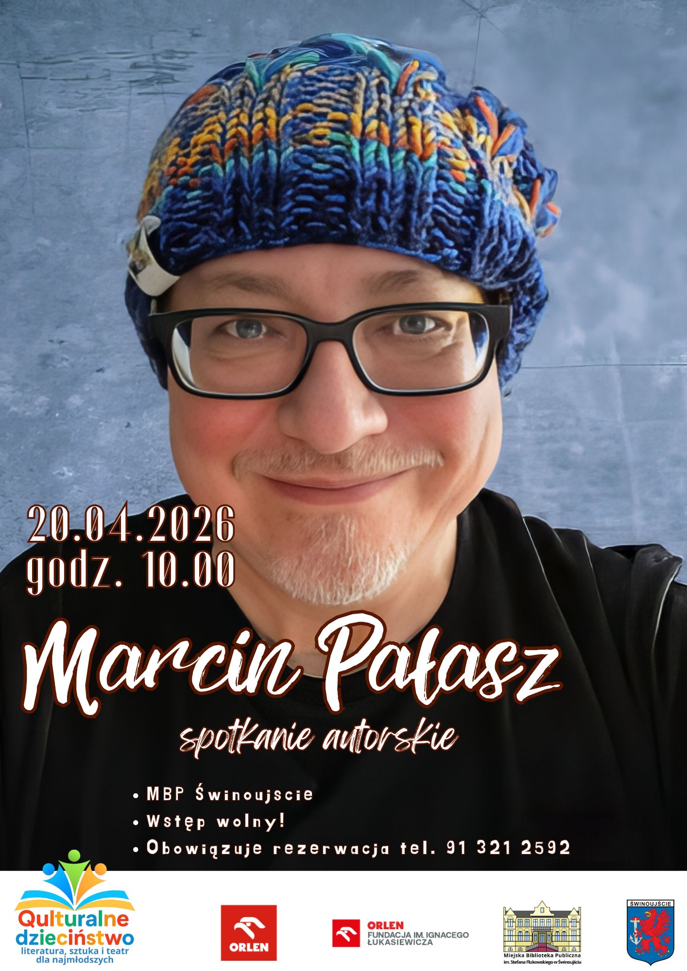 Miejska Biblioteka Publiczna w Świnoujściu zaprasza na spotkanie autorskie z Marcinem Pałaszem, które odbędzie się 20 kwietnia 2026 r. o godz. 10.00. Wydarzenie skierowane jest do dzieci z przedszkoli oraz klas zerowych.